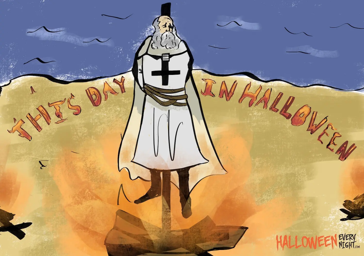 This Day in Halloween: 61 Knights Templar are arrested in Paris, Friday the 13th of October, 1307, as a possible origin of the superstition. / Illustration by Brooke Ramirez
