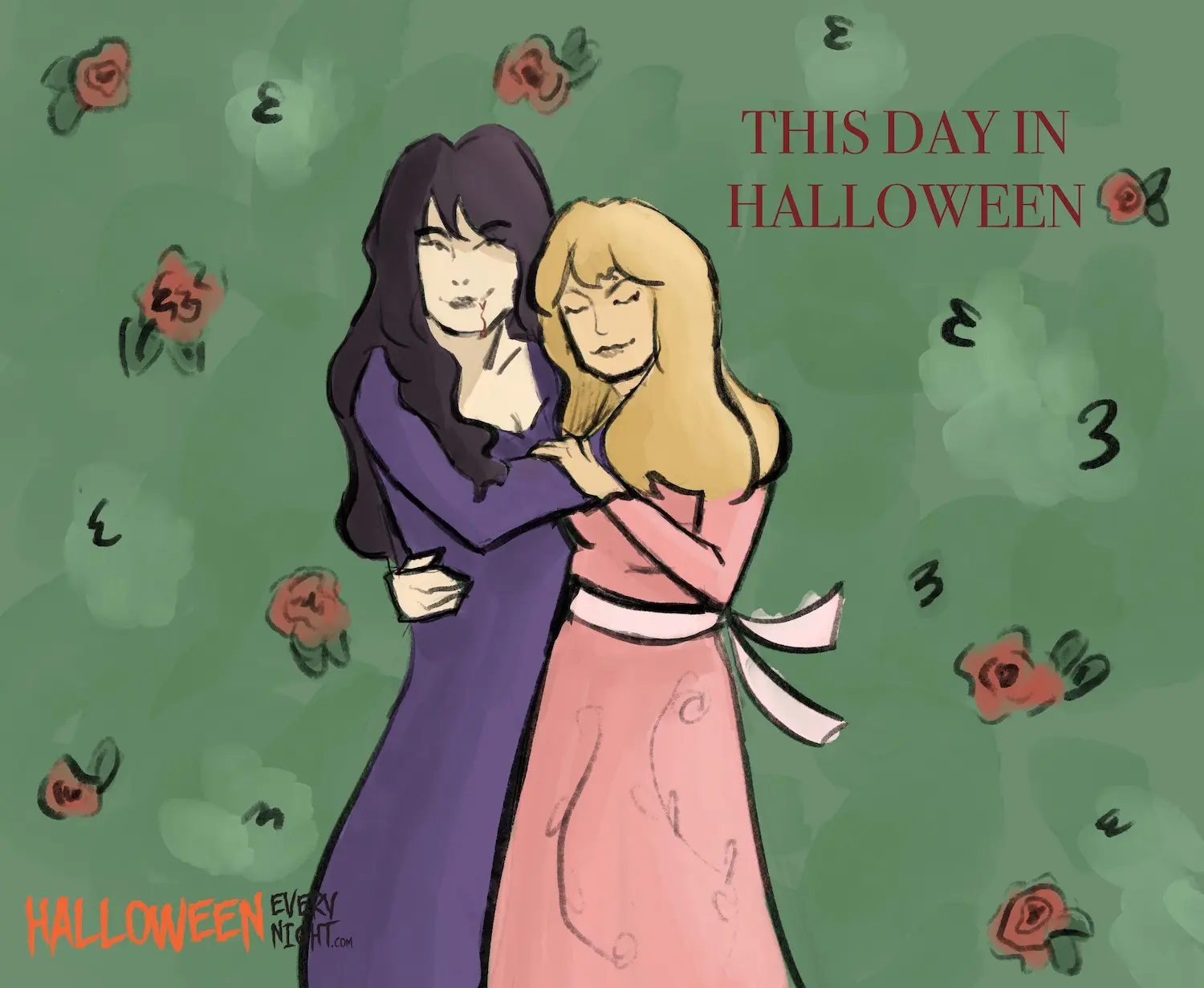 This Day in Halloween: Hammer Films' 'bloodshed and bosoms' lesbian vampire tale "The Vampire Lovers" opens across the U.S. in 1970./ Illustration by Brooke Ramirez