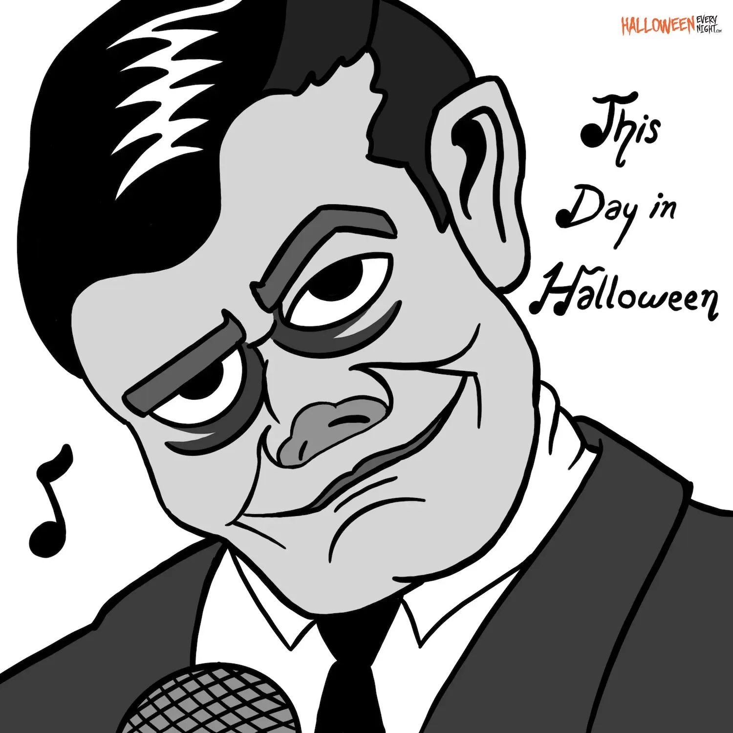 This Day in Halloween: “Monster Mash” by Bobby “Boris” Pickett and the Crypt-Kickers ends a two-week run at number one on the charts in 1962. / Illustration by David Ford