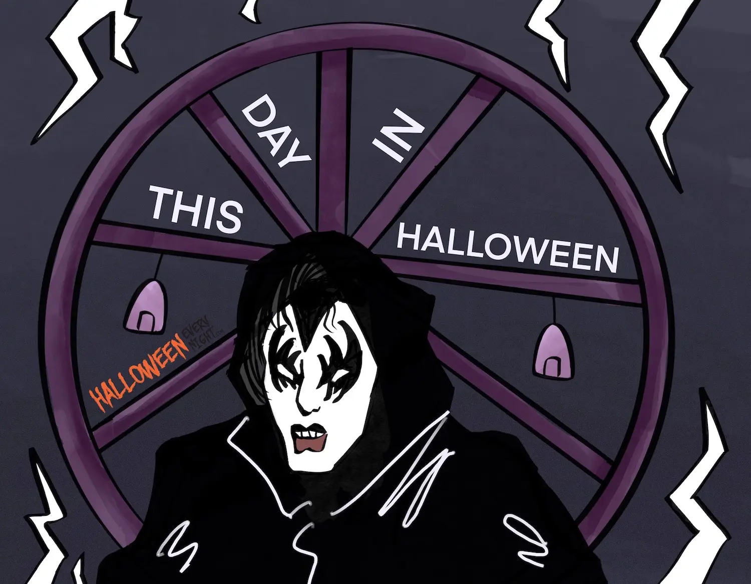This Day in Halloween: Tongue-in-cheek action thriller "Kiss Meets the Phantom of the Park" premieres on NBC in 1978. / Illustration by Brooke Ramirez