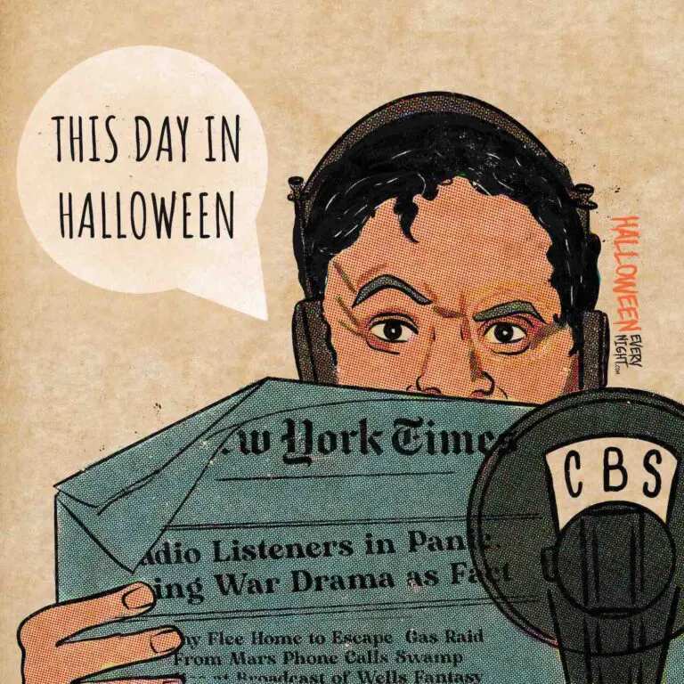 This Day in Halloween: Orson Welles panic-inducing radio adaptation of H.G. Wells’ War of the Worlds is broadcast across the country in 1938. / Illustration by Allison Jimenez