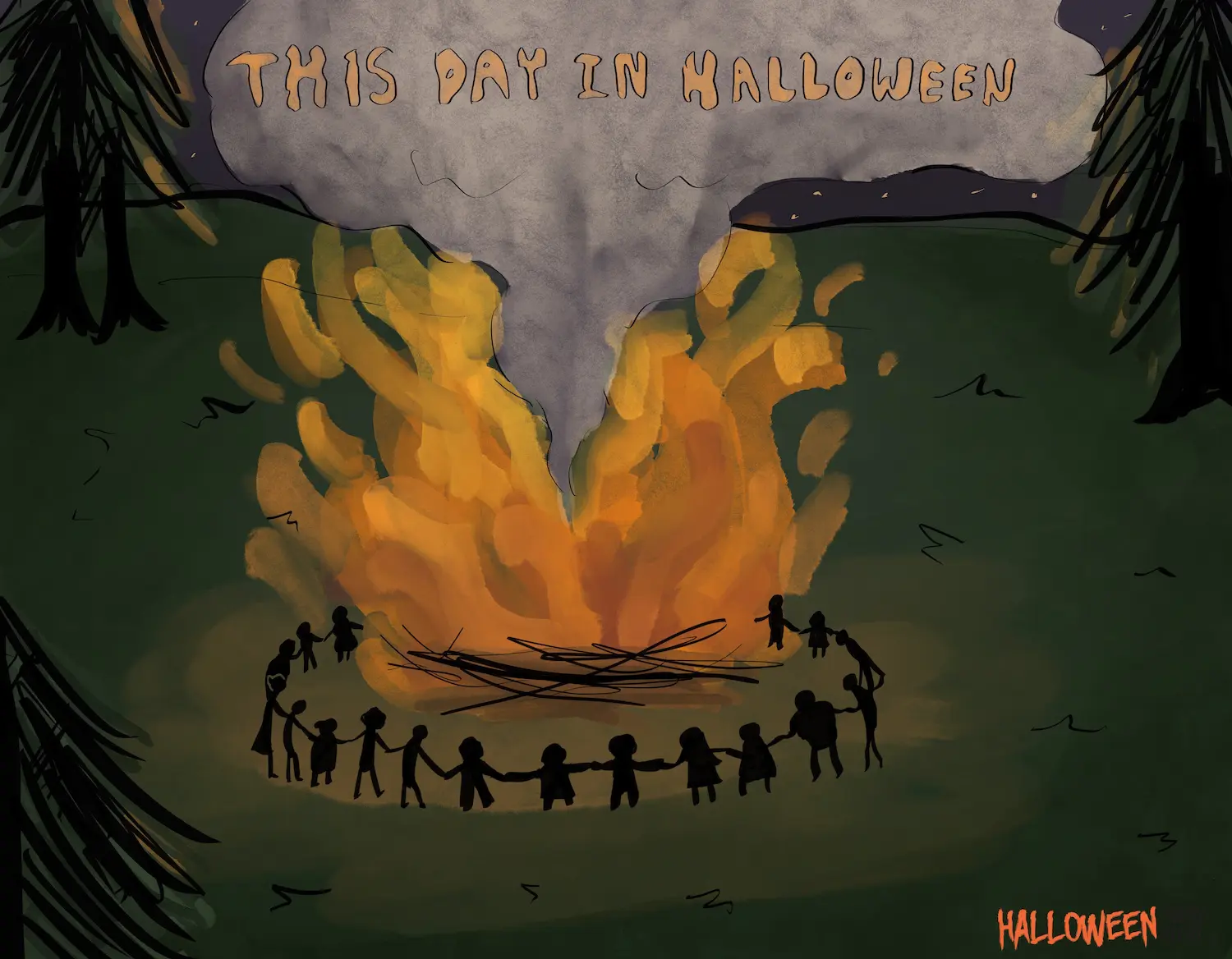 This Day in Halloween: Beginning of the two-day Gaelic Samhain (pronounced "SOW-in") festival, considered a precursor to modern Halloween. / Illustration by Brooke Ramirez