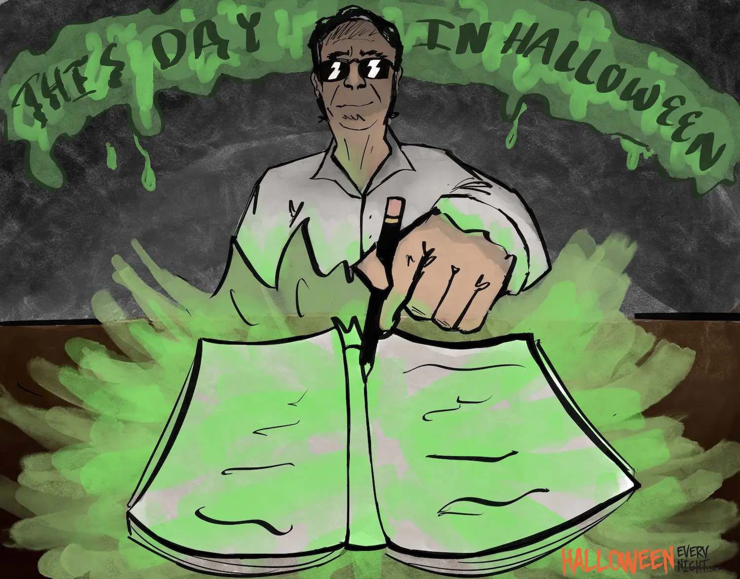 This Day in Halloween: “The Stephen King of children’s literature,” R. L. Stine is born in Columbus, Ohio in 1943. / Illustration by Brooke Ramirez
