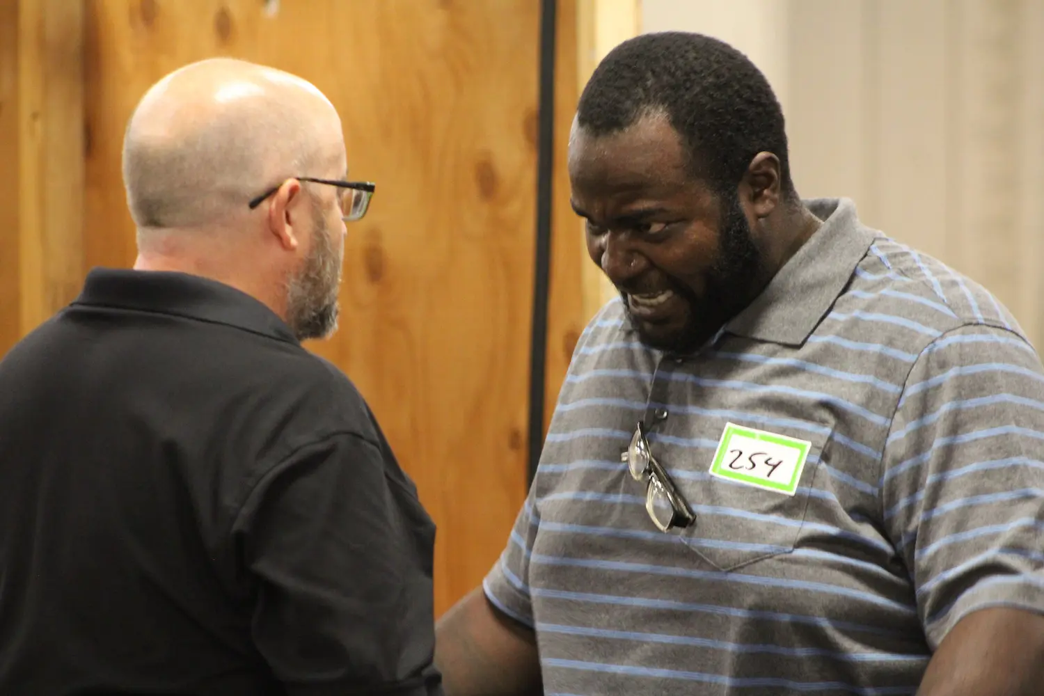 Queen Mary Dark Harbor’s talent director David Wally tests auditioners on their ability to scare a guest up close when they’ll be walking through event mazes in October. All photos by Jessica Peralta.