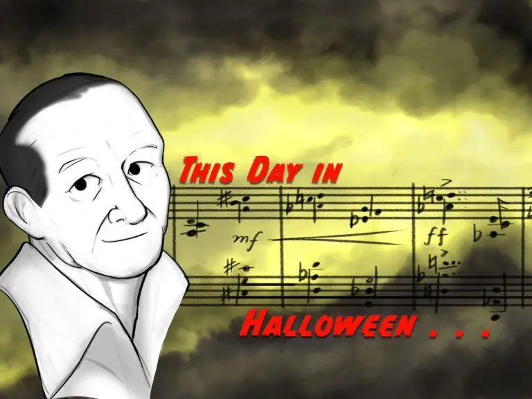 This Day in Halloween: Hammer Films composer James Bernard -- whose scores include "The Horror of Dracula" -- is born in England in 1925. / Illustration by Dominic Ho