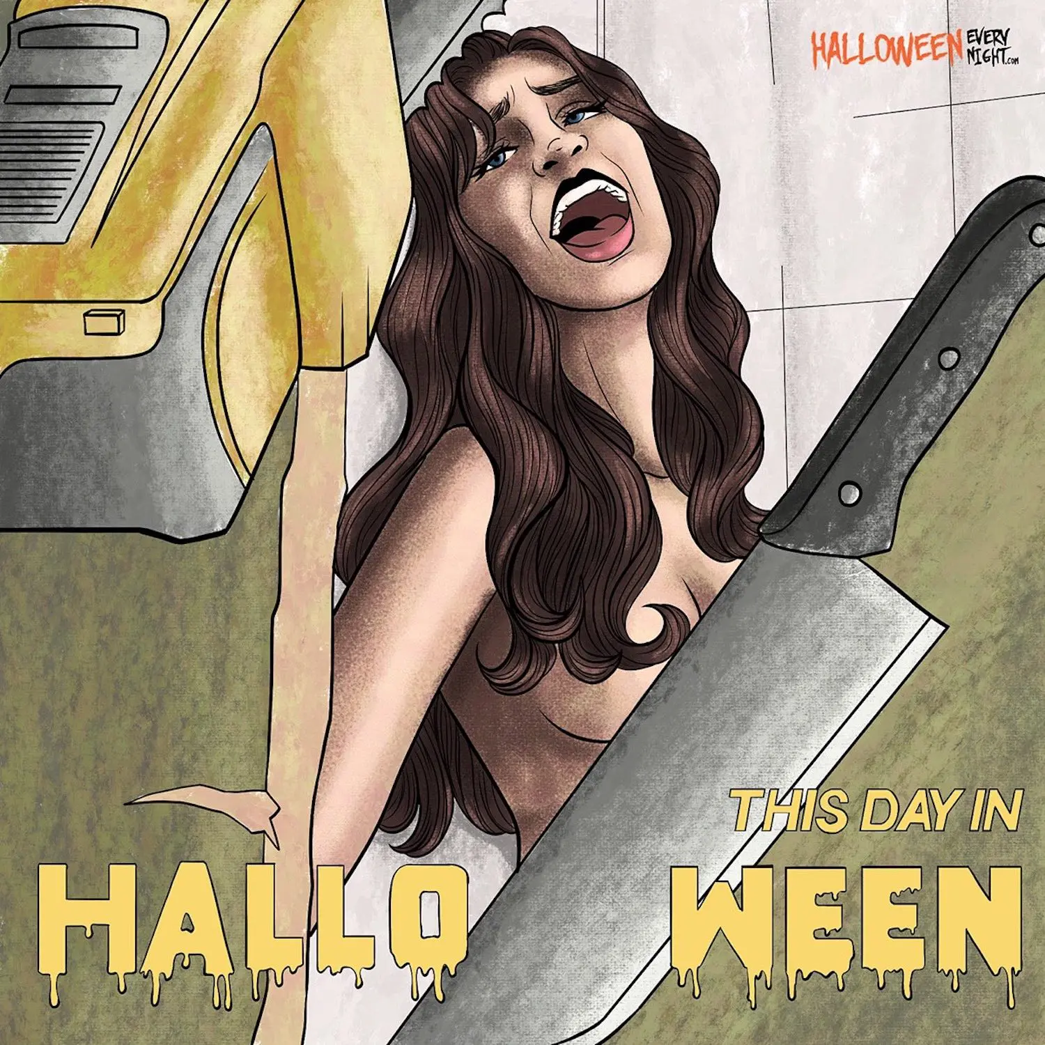 This Day in Halloween: The controversial American-Spanish slasher film -- and famous "video nasty" -- "Pieces" opens across the U.S. in 1983. / Illustration by Blanca Dunwoody