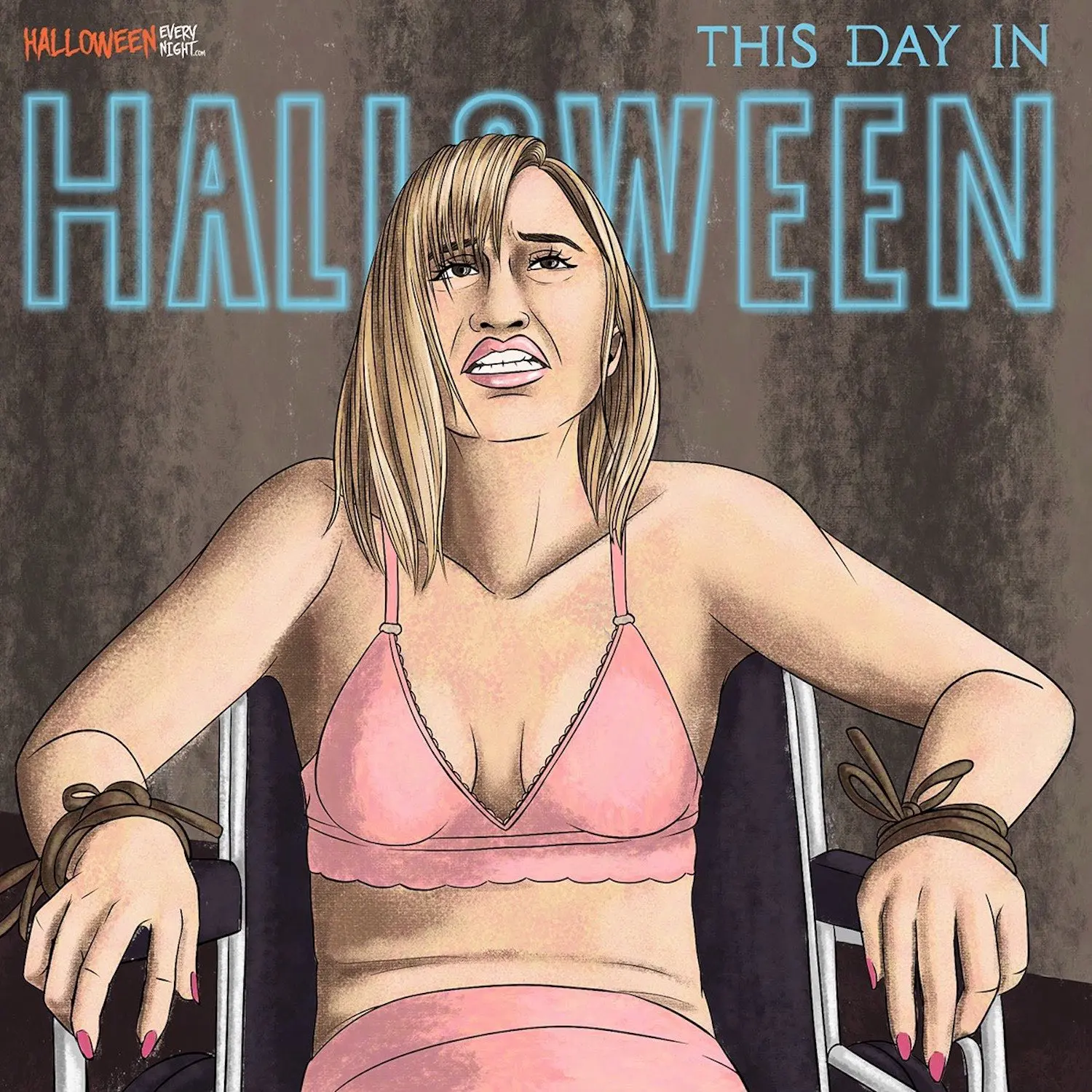 This Day in Halloween: The supernatural indie thriller "It Follows" -- starring Maika Monroe -- premieres at Fantastic Fest in 2014. / Illustration by Blanca Dunwoody