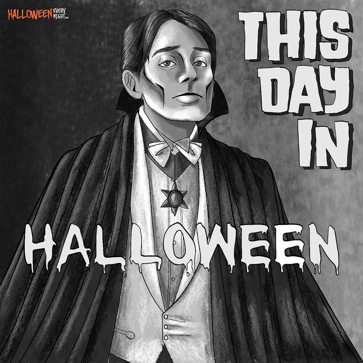 This Day in Halloween: Radio DJ, singer, voice actor and late-night horror show host John Zacherle is born in Philadelphia in 1918. / Illustration by Blanca Dunwoody