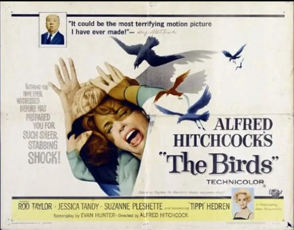 The story begins in a bird shop. Rod Taylor and Tippi Hedren meet in a room filled with birds in cages. It all seems so topical. A prime example of man’s dominance over nature, it establishes a tone of shifting control that pervades the remainder of the film.