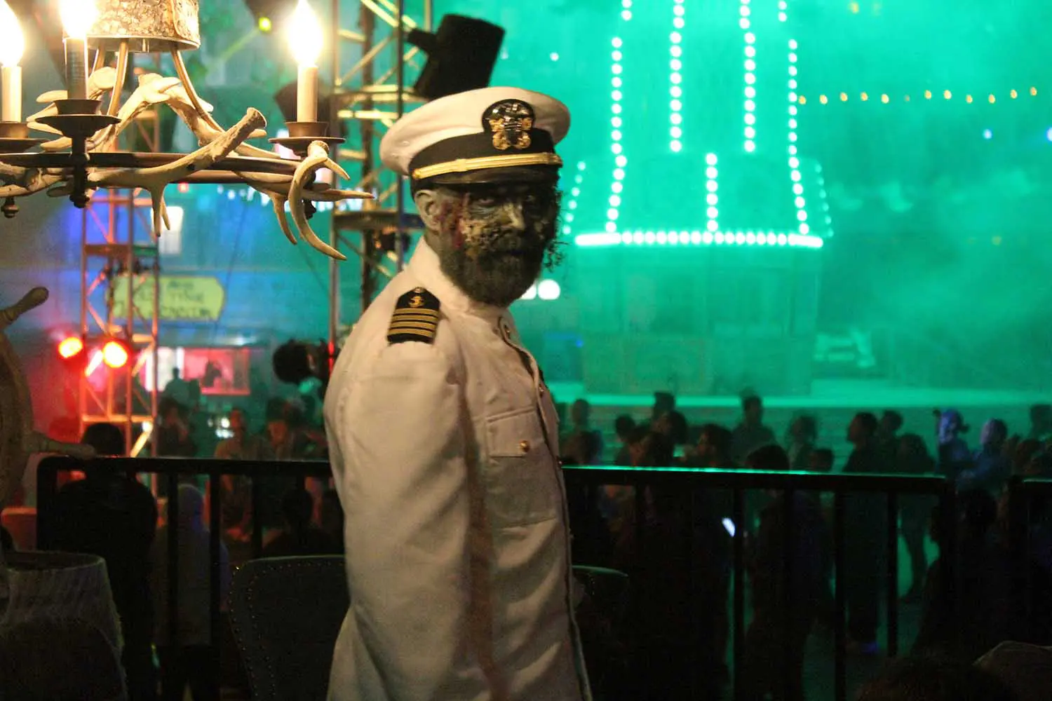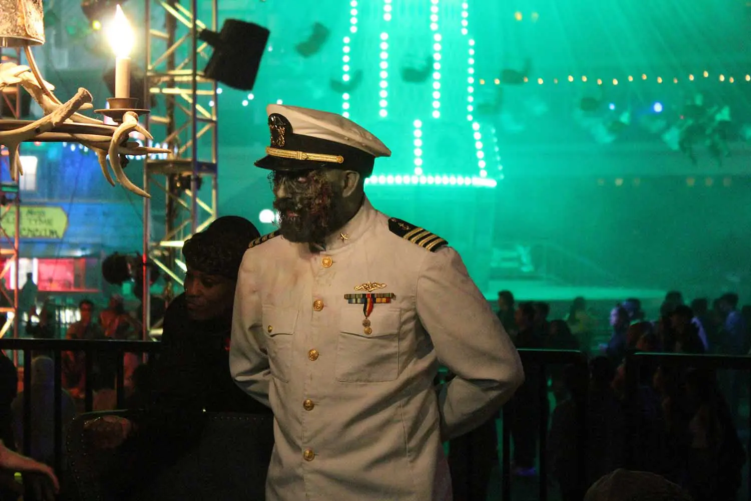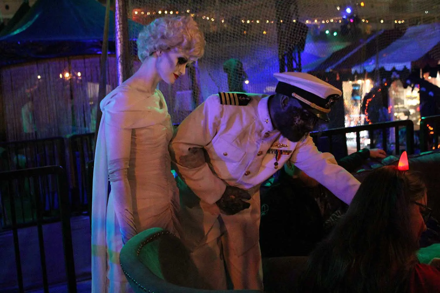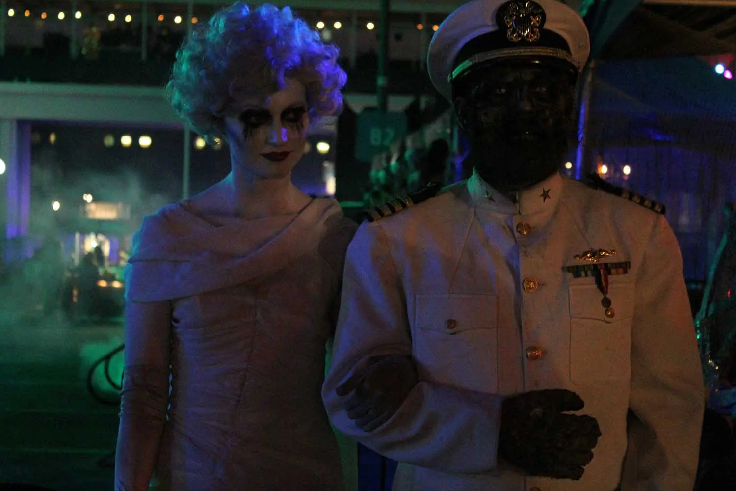 The Captain and Graceful Gale are two of The Queen Mary Dark Harbor’s iconic figures. Witness their transformation.