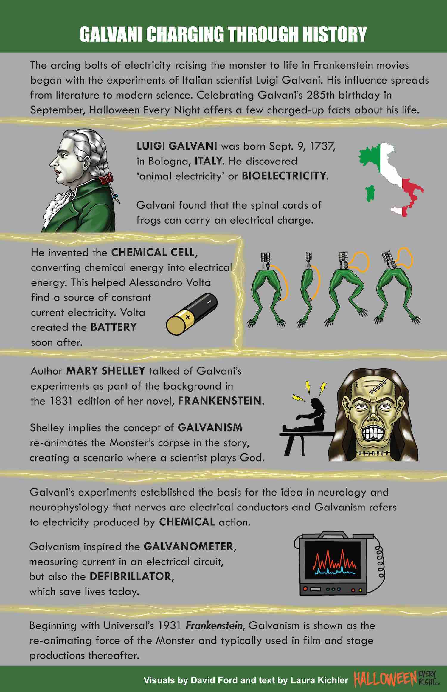 For Galvani’s 285th birthday on Sept. 9, Halloween Every Night charges through a few facts on just how he brought to the world.