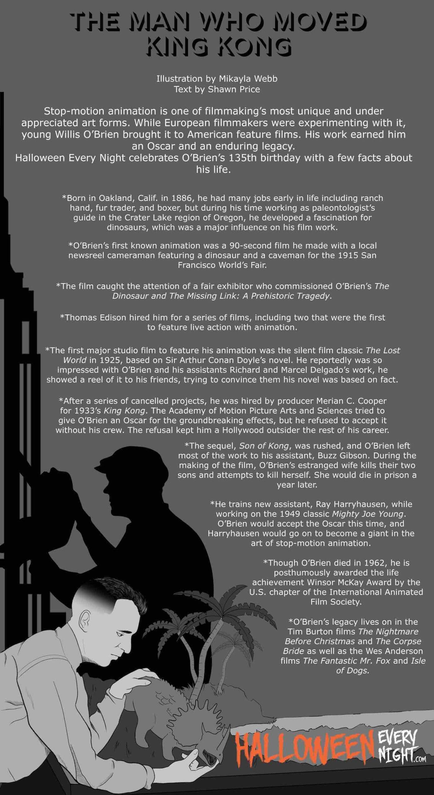 If you seen the original King Kong, you’ve seen the pioneering work of Willis O’Brien, whose 135th birthday is March 2.