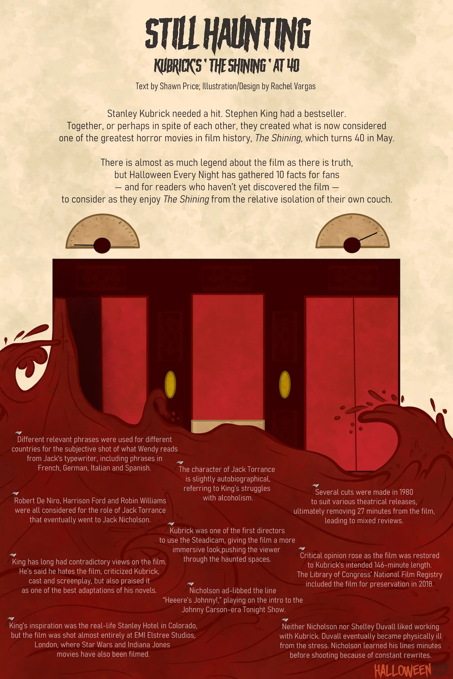 For its anniversary, Halloween Every Night offers up a bloody elevator ride of facts with Kubrick and King.
