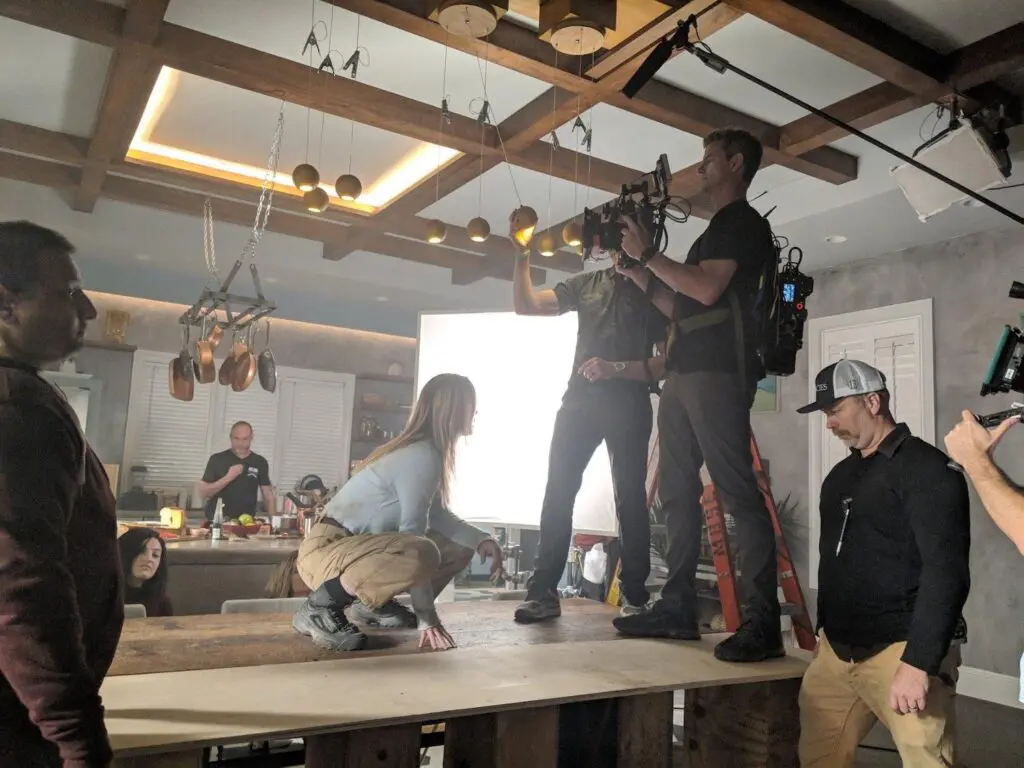 Moyer recounted a scene where the character of Crystal, played by Betty Gilpin, goes to open a truck door, but notices the wire of a rigged explosive. The shot was originally a simple low angle, looking up at Gilpin.