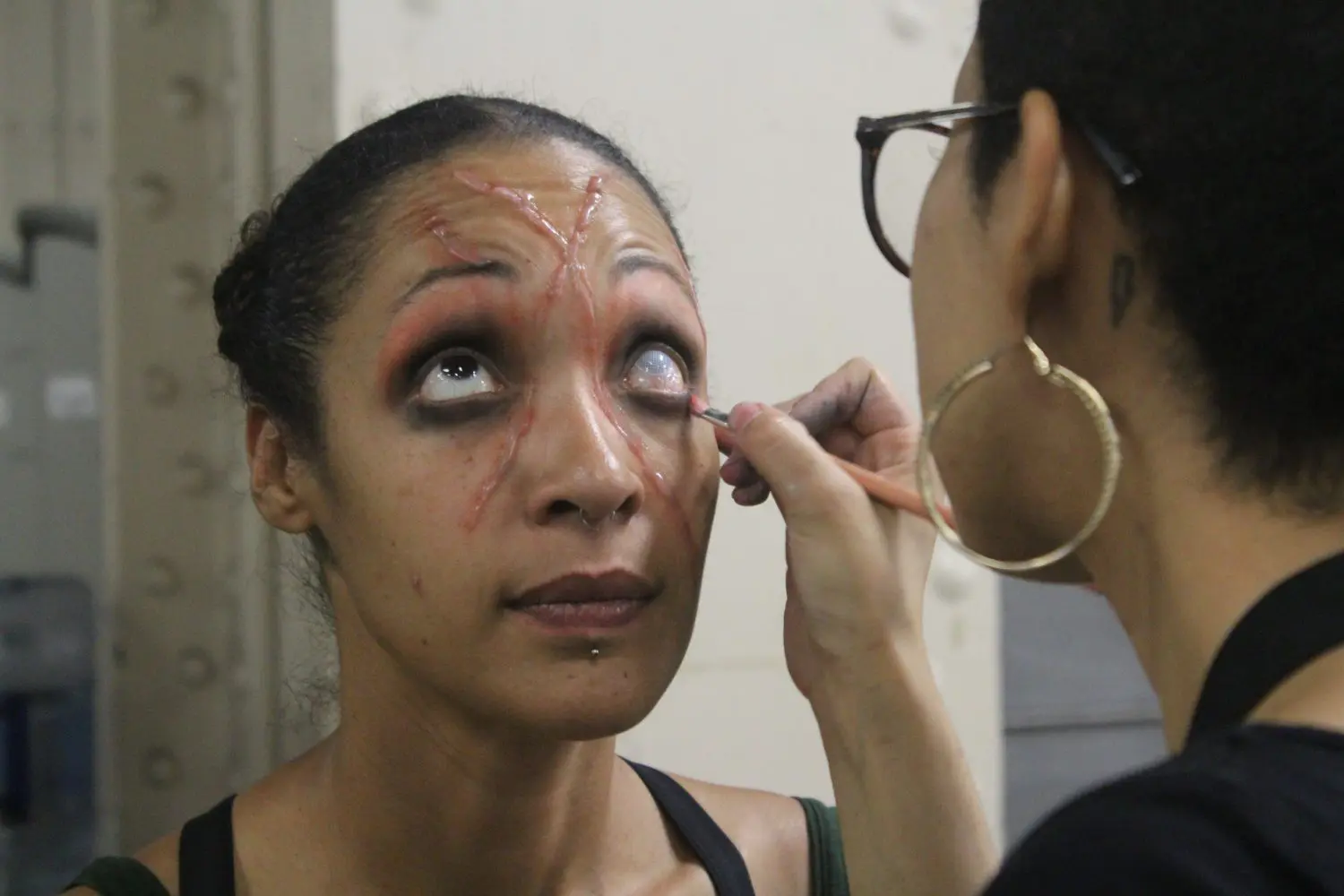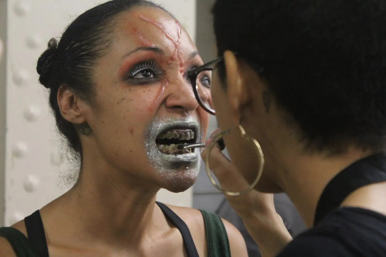Burdetta Jackson becomes Dark Harbor’s Voodoo Priestess. / Photo by Jessica PeraltaIt’s all about the eyes. / Photo by Jessica PeraltaGive us a smile. / Photo by Jessica PeraltaAnd more makeup… / Photo by Jessica PeraltaGotta get the teeth. / Photo by Jessica PeraltaOn the monster red carpet / Photo by Jessica PeraltaVoodoo Priestess strikes a pose. / Photo by Jessica PeraltaVoodoo Priestess works the red carpet. / Photo by Jessica PeraltaEveryone needs friends. / Photo by Jessica PeraltaVoodoo Priestess fire show / Photo by Jessica PeraltaStill burning / Photo by Jessica PeraltaA fiery finale / Photo by Jessica Peralta