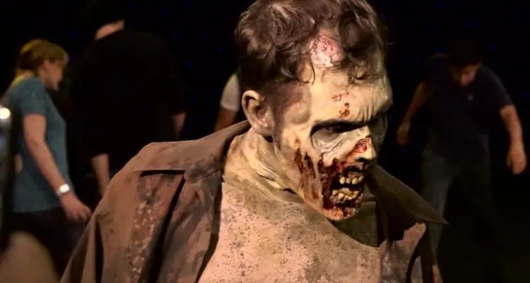 The Walking Dead Executive Producer and Director Greg Nicotero shows these Walker trainees how it’s done during Walker Boot Camp for Universal Studios Hollywood The Walking Dead permanent attraction, which opens at the theme park July 4. Walker actors from the show were also part of the onsite training to help trainees release their inner zombies.