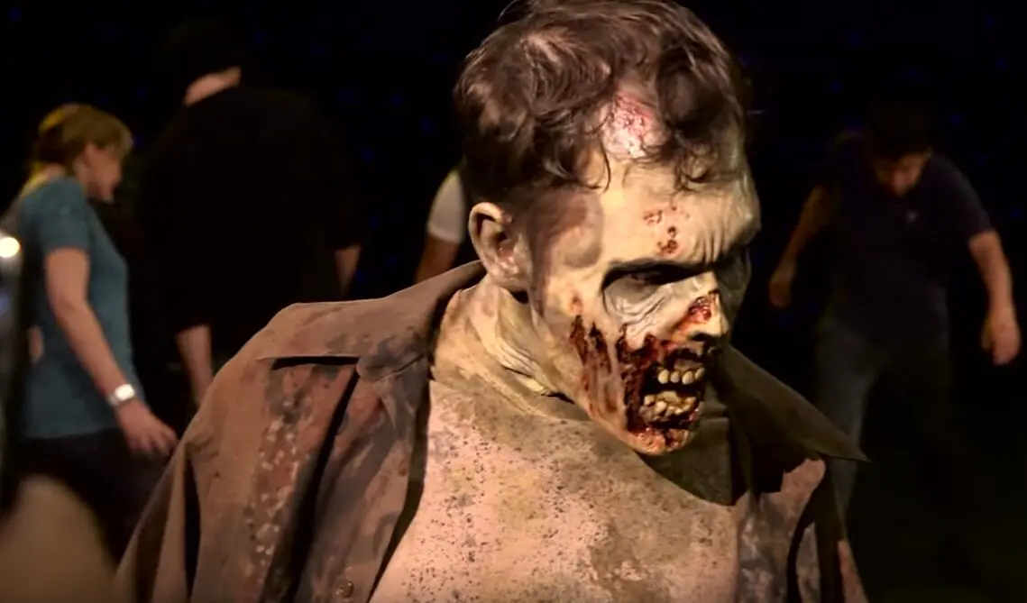 The Walking Dead Executive Producer and Director Greg Nicotero shows these Walker trainees how it’s done during Walker Boot Camp for Universal Studios Hollywood The Walking Dead permanent attraction, which opens at the theme park July 4. Walker actors from the show were also part of the onsite training to help trainees release their inner zombies.