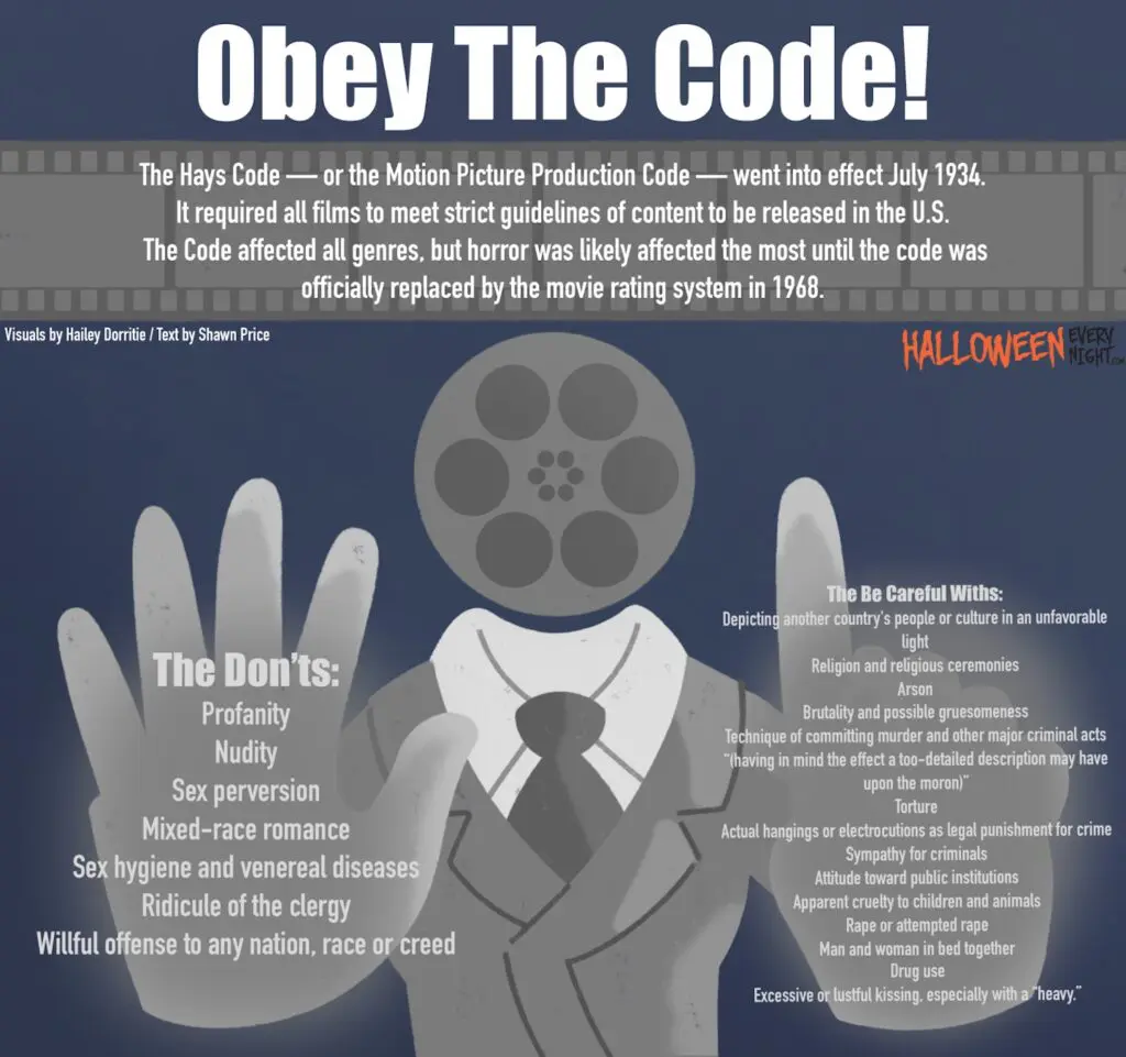 Hollywood took the first option. And the infamous Hays Code — also known as the Motion Picture Production Code — was born. Officially instituted in July 1934, it required any film made in Hollywood to get an official certificate of approval from the Hays office to be released.