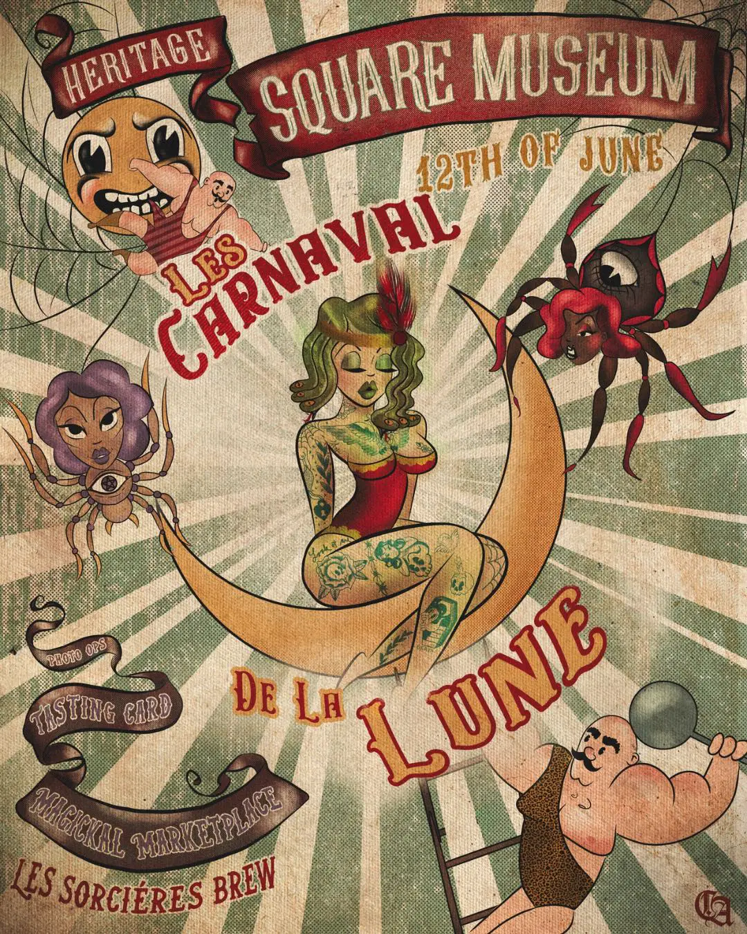 JD: For Carnaval de la Lune, this process has been nearly 4.5 months in the making. The concept was one we originally had planned for another event, unfortunately scrapped due to COVID. When we looked at the beauty of Heritage Square, it just made sense to us to bring the Carnaval to life. We’ve hand-selected all talent and performers, worked with Zachariah the Witch to create an immersive stage show and photo ops, and spent the last few months curating a marketplace we feel matches the theme of the show. With a small team of three, it’s been a busy but gratifying last few months. Modifying an event to fit COVID guidelines has to be the most difficult part of this experience. We want to create the energy of a traveling vintage sideshow from 6 feet apart, so we’ve attempted to create fun ways to do that with Carnaval de la Lune.