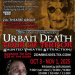 Zombie Joe’s Urban Death Tour of Terror 20th Anniversary Savage Sartor Halloween Every Night October 7, 2025 Zombie Joe’s Underground Theatre Group celebrates 20 years of their unique, North Hollywood theatrical horror experience: Urban Death Tour of Terror. Photos provided by Zombie Joe’s Underground Theatre Group